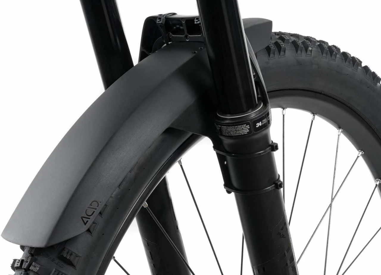 The ACID Mud Blocker ensures a clean view on muddy trails. Fixed with the included cable ties, the Mud Blocker won’t let you down even in case of heavy shocks and vibrations. Transparent foils protect the fork from scratches. The integrated dip tube protection blocks the mud and keeps your fork clean. With a width of 87 mm, the Mud Blocker fits most 26er, 27.5er and 29er MTB forks.