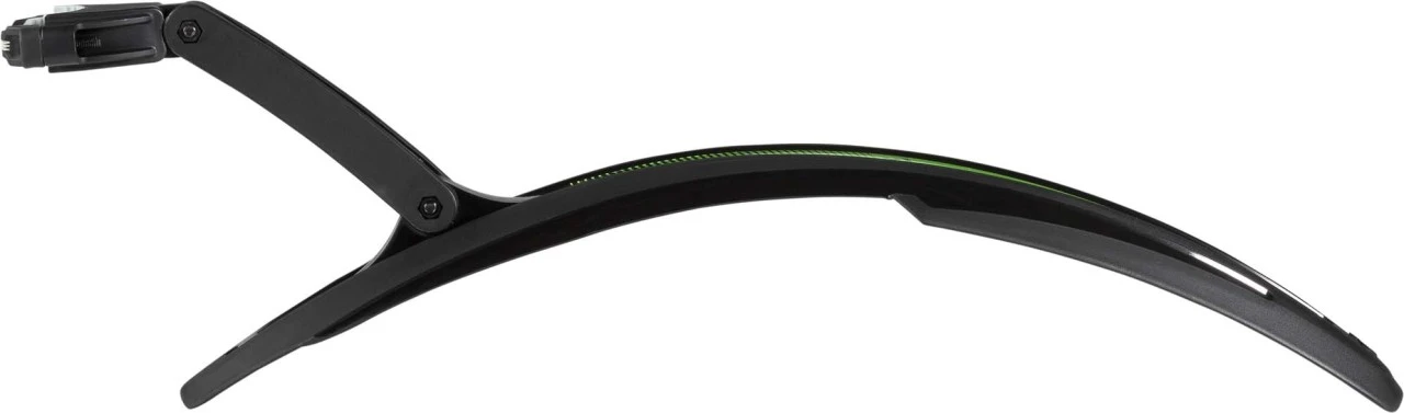 Our Cubeguard JUNIOR 200 rear mudguard in cool Enduro style! The mudguard was especially developed for 20″ junior bikes. The quick-fit universal clamp ensures a secure attachment to the seat post and the seat tube. Rubber linings on the clamp prevent the mudguard from twisting and protect the paint. Optimal adjustability is achieved by the double-jointed arm. The high-quality and scratch-proof sticker completes the matt shiny CUBE surface finish.