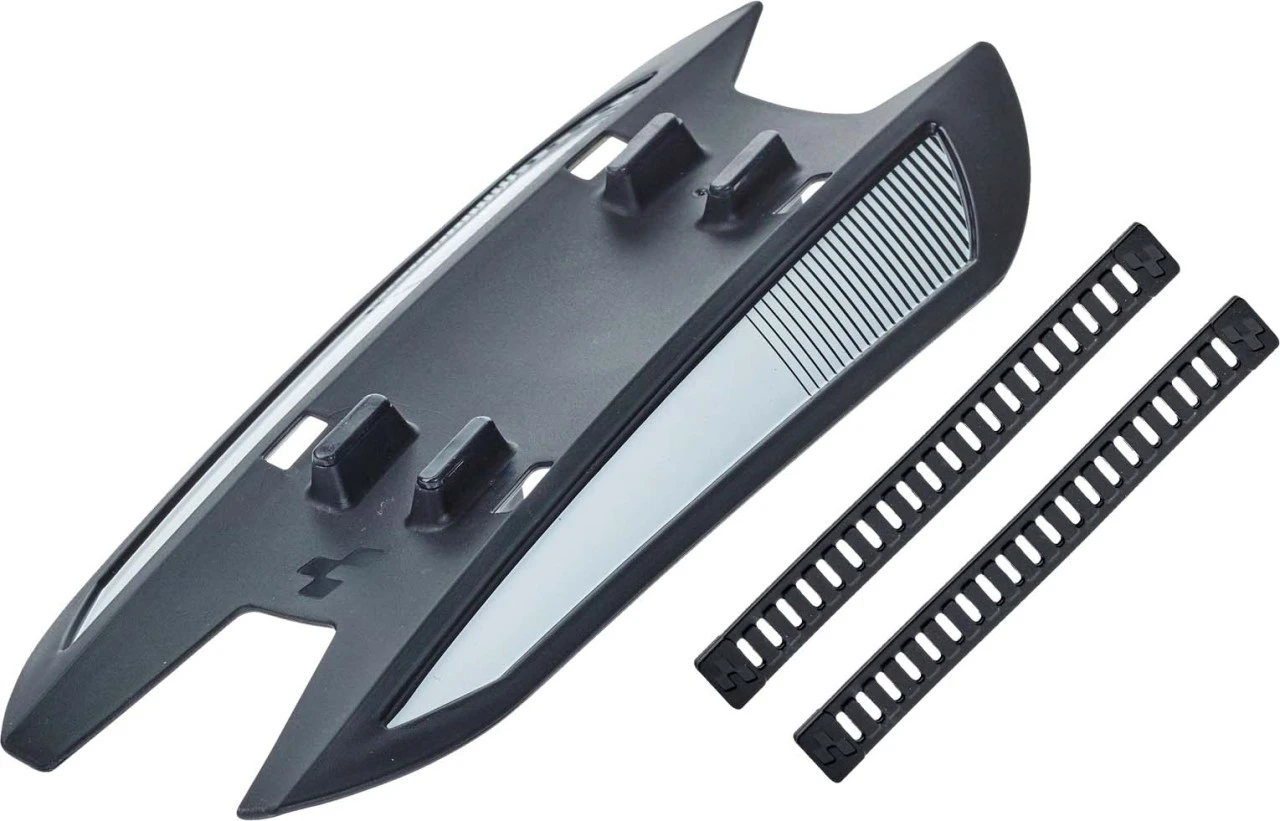 The JUNIOR mudguard Downtube front in Enduro style for 20″ and 24″ can be mounted and removed from the down tube in seconds by means of a rubber bracket. The mudguard is also compatible with frames with cable routing on the down tube. The high-quality and scratch-resistant stickers complete the matt-glossy CUBE surface finish. Shock X elements offer vibration absorption, anti-twist and scratch protection.