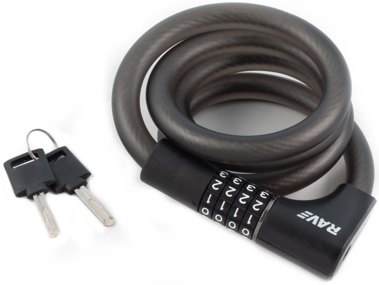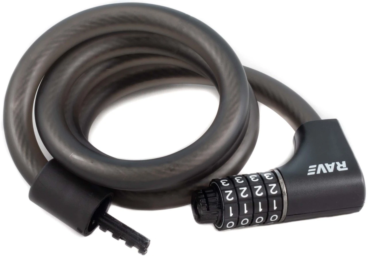 The spiral cable lock of RAVE protects by an extremely resistant steel cable from cutting and punctures. This lock offers by the 15 mm thick cable very high security in the High Level Bereich. In addition, it is covered with a vinyl protection, for comfortable handling and to prevent scratching. Due to its light weight, it offers high comfort and can be easily carried even in small bags. In the medium price segment, it offers an excellent price / performance ratio.