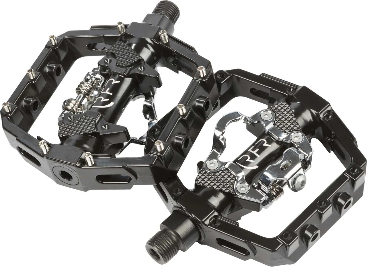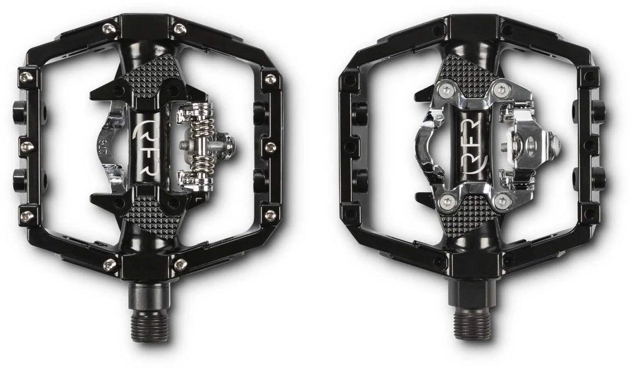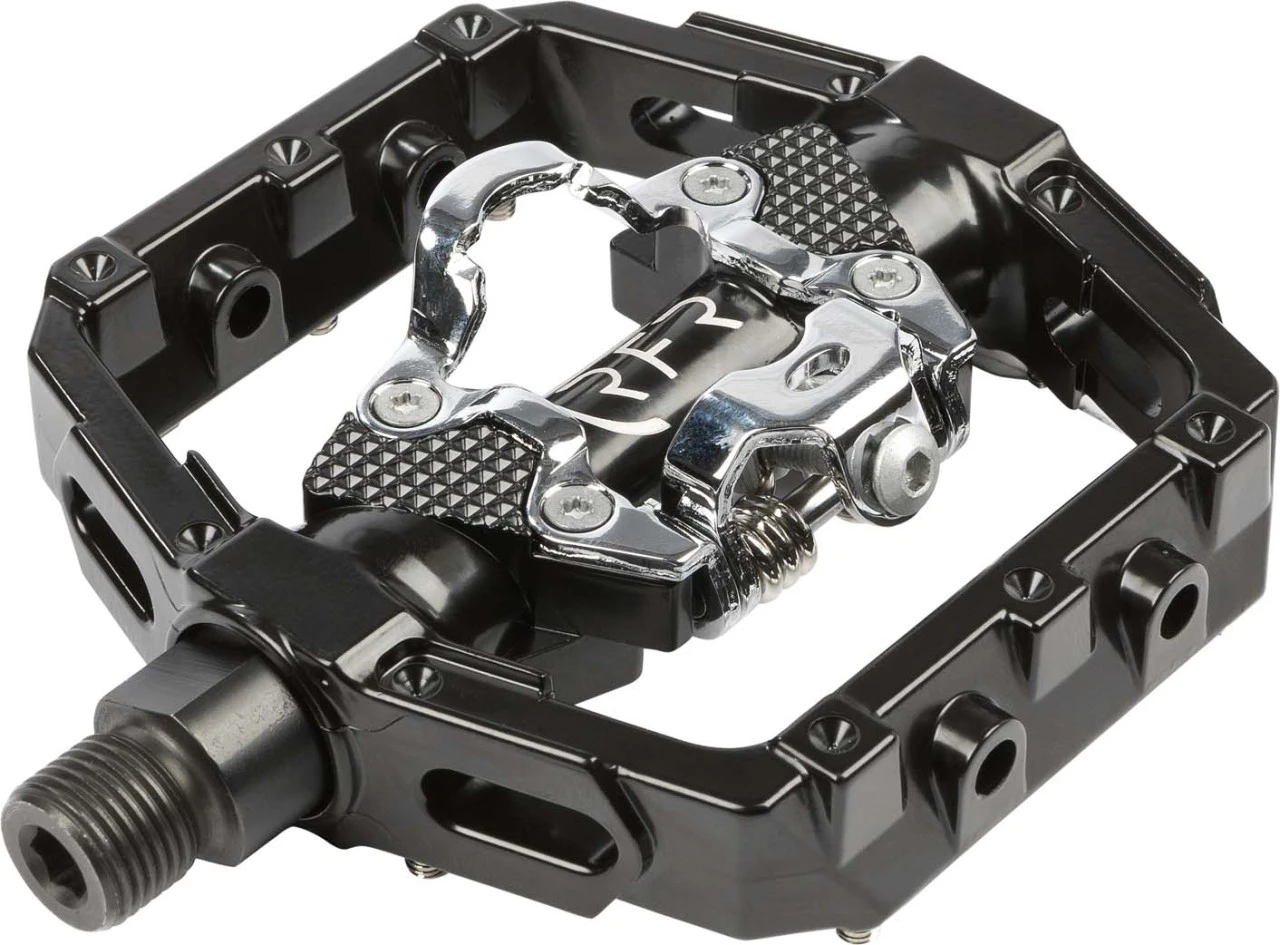 The flat pedal with click system is SPD compatible and is mounted on a Cr-Mo axle. The anti-slip pins are replaceable and offer best grip on the Fahrrad.