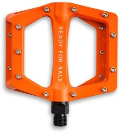 The lightweight flat pedals are made of aluminum and are installed with a CrMo axle. The anti-slip pins are replaceable and provide the best grip on the Fahrrad.