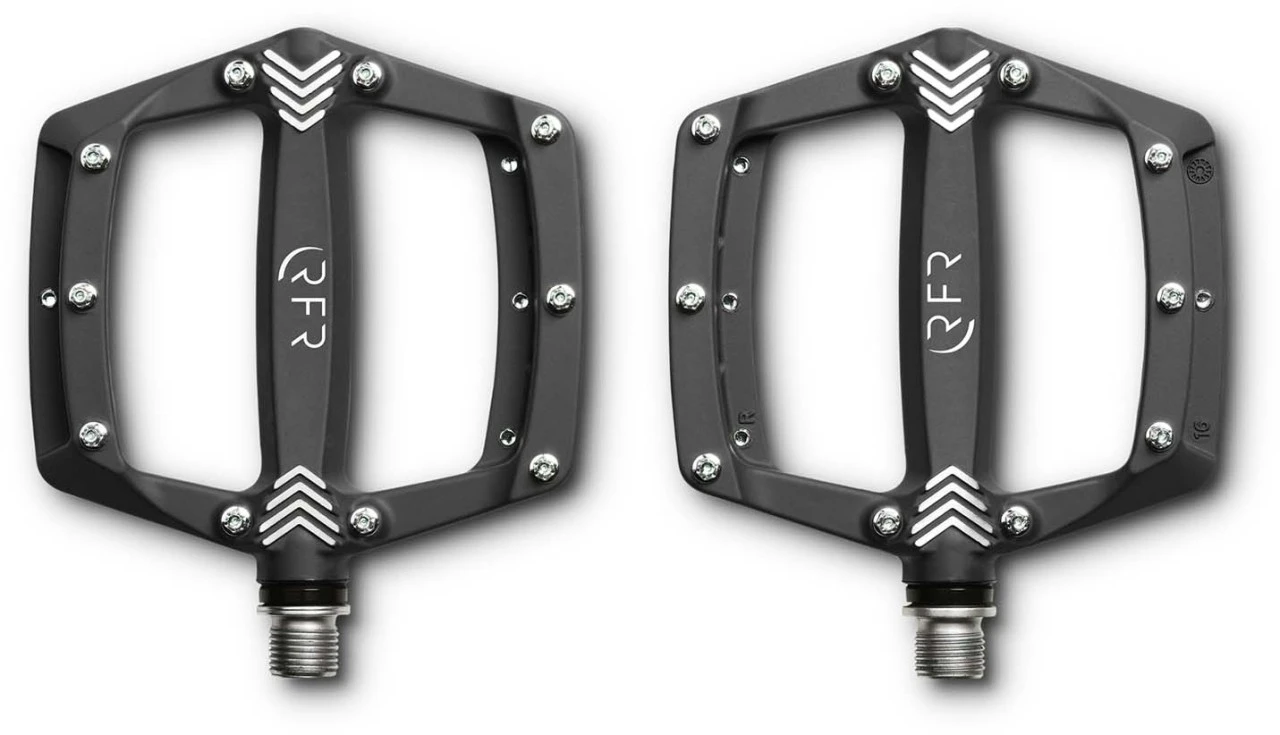 Lightweight flat pedal with low profile, replaceable pins, industrial bearings and LSL bushing.