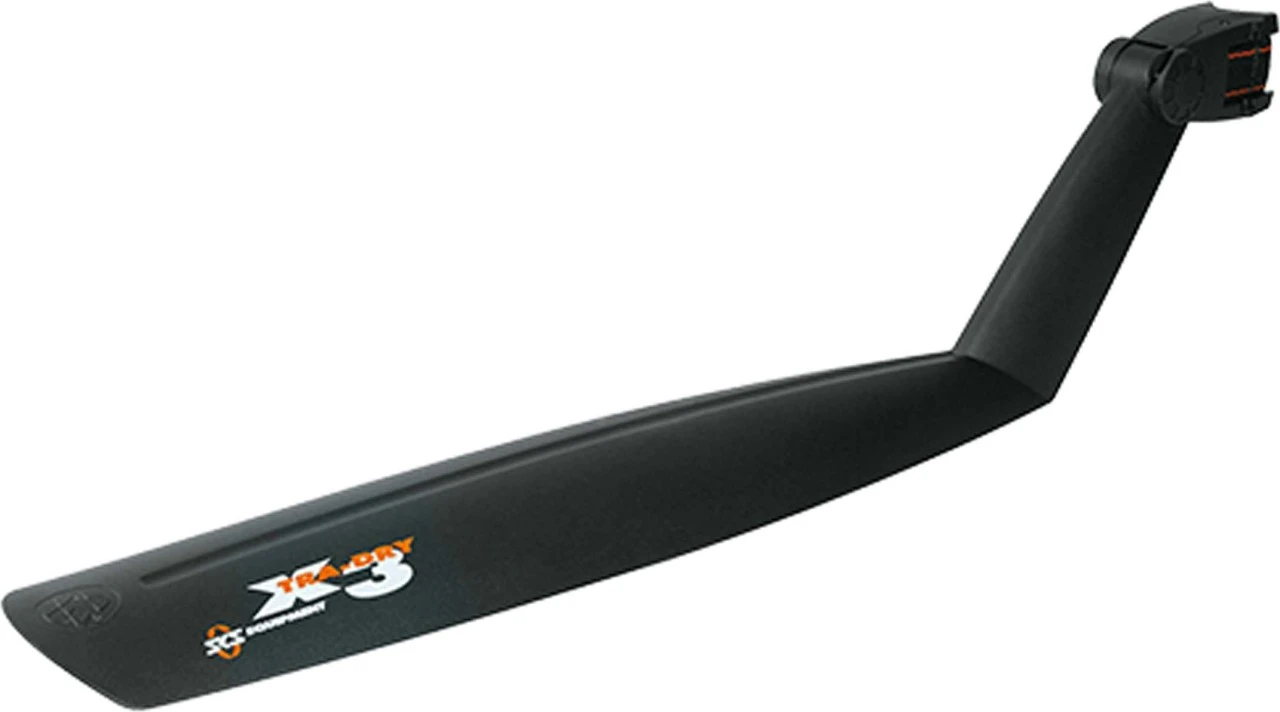 The dirtboard with that little extra! Super light and yet extremely stable, the SKS mudguard X-TRA-DRY made of black, impact-resistant high-performance plastic proves itself on muddy trails and forest paths. The MTB mudguards are ideal for all hardtails and full suspension bikes.