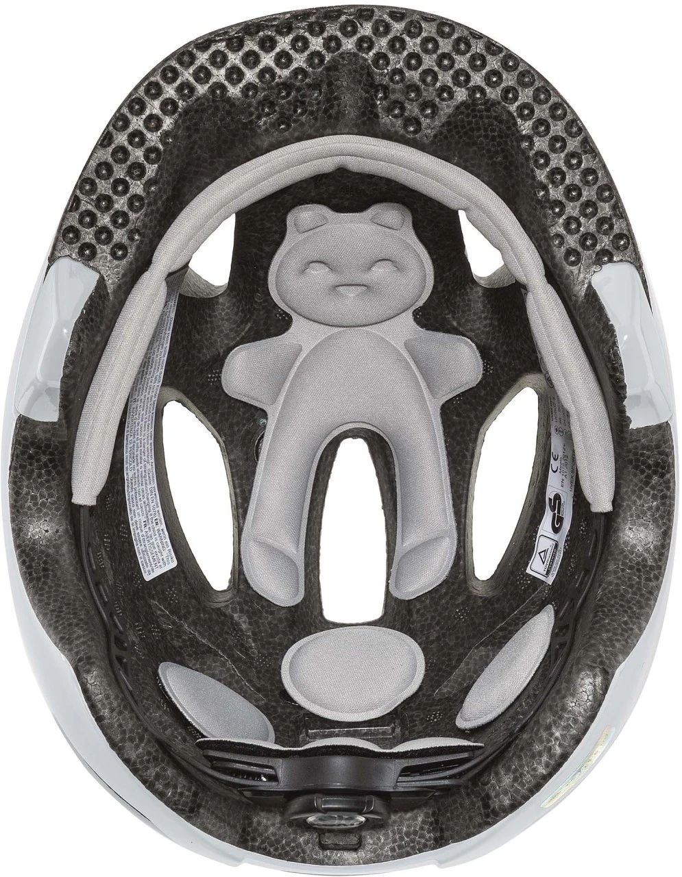 The safety of babies and small children has top priority. That’s why, even on the very first bike ride in a child’s seat, a suitable bike helmet should be worn on the little head. It has to be nice and light, but also super safe. The uvex oyo cc convinces all along the line with its child-friendly design, soft bear padding and first-class protection. Thanks to the innovative Kids Extra Protection System (KEPS), which integrates the helmet’s visor into the EPS material, the sensitive forehead area is optimally protected in an emergency. Particularly clever: the Baby Buffer attached to the back of the head reduces vibrations that are transferred to the helmet on uneven paths through the child’s seat and also prevents the head from slipping off the back of the seat.