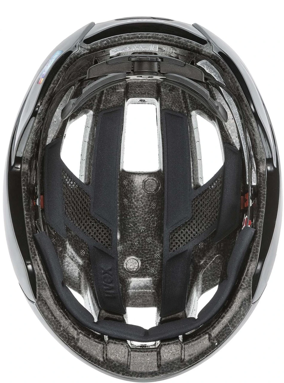 Get up to full throttle, go to the limit, push your own performance limits. The uvex rise is the perfect helmet for road cyclists on the hunt for a new personal best time. If you want to achieve top performance, you have to be able to rely 100 percent on your equipment. Design and top function in perfection play a decisive role here. This is exactly what distinguishes the uvex rise. The ultra-modern road bike helmet combines a super-light double inmould construction with clear lines, large ventilation channels, quick-drying helmet padding and a pronounced back of the head area for improved protection. The helmet is adjusted using the Anatomic IAS system. Particularly clever: the goggle garage, in which the sports goggles can be stored.